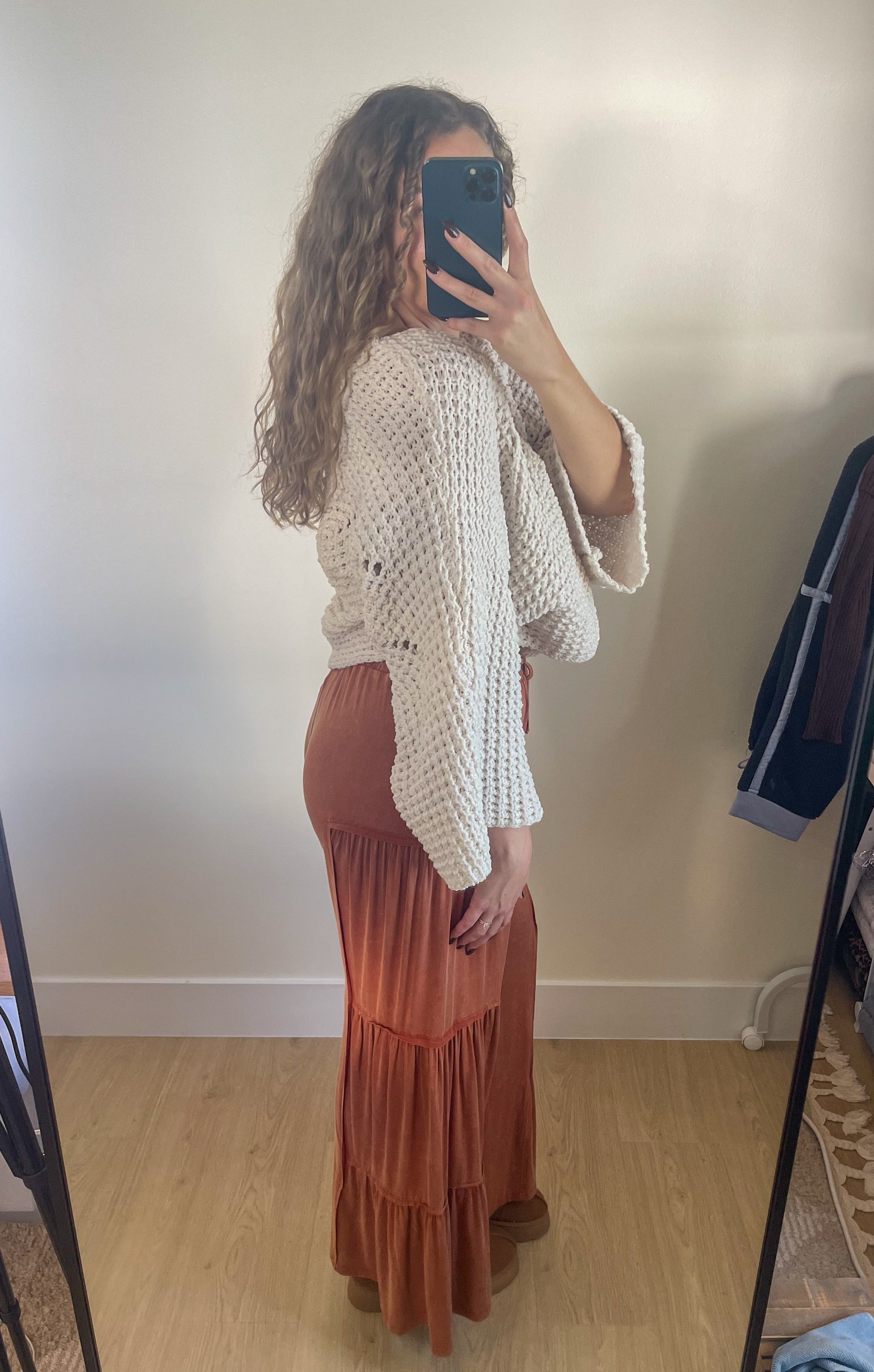Meet the Copper Cascade Pants. Designed in a rich copper hue that feels warm, earthy, and elevated, these wide-leg tiered pants bring movement to every step. The soft, lightweight fabric drapes beautifully, while the elastic drawstring waistband keeps things comfortable and easy for all-day wear.